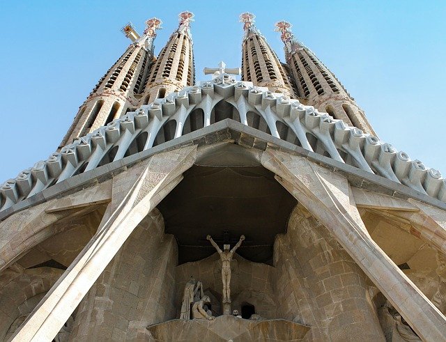 Fachada de la Natividad: La única completada en vida de Gaudí, explora el nacimiento de Jesús con una explosión de detalles simbólicos